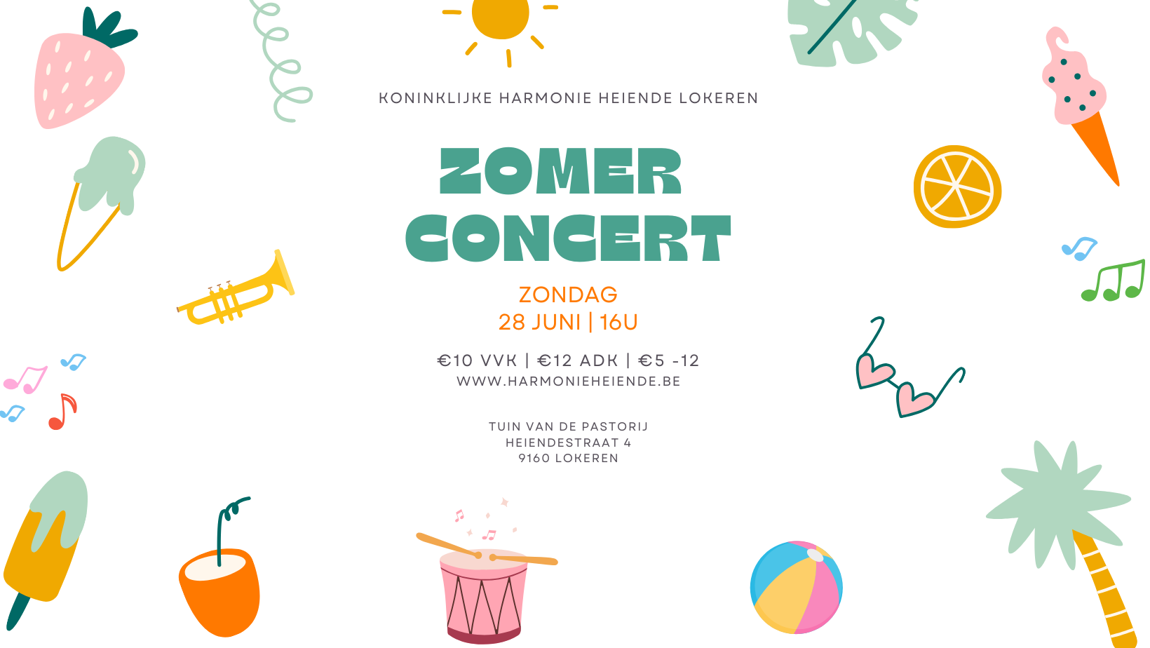 Op zondag 28 juni nodigt de Koninklijke Harmonie Heiende Lokeren jullie van harte uit voor een sfeervol zomerconcert in de prachtige tuin van de pastorij van Heiende onder leiding van Stef Hesters.